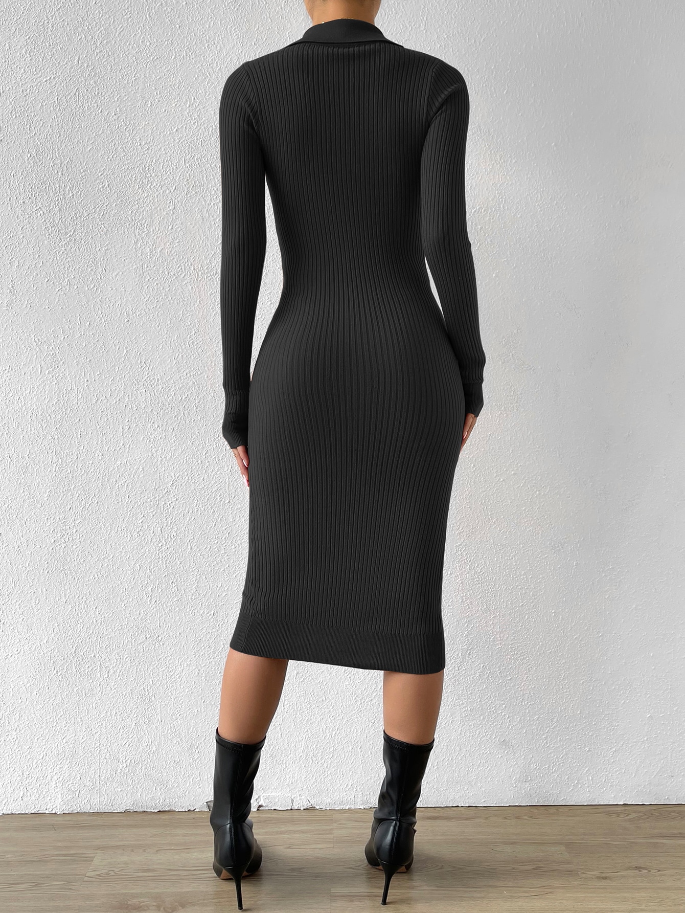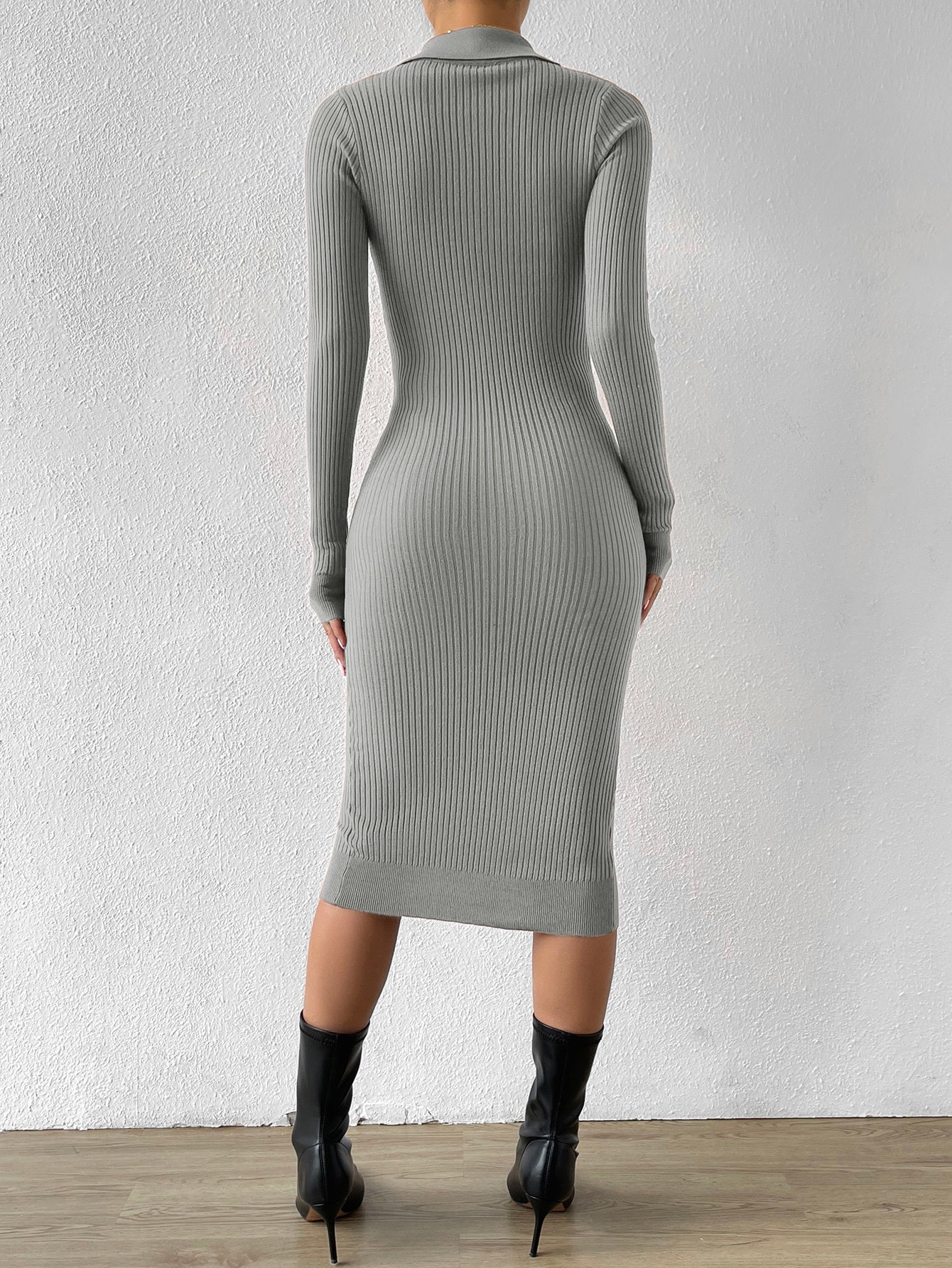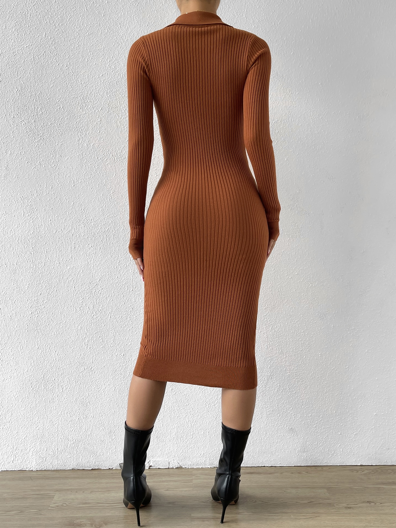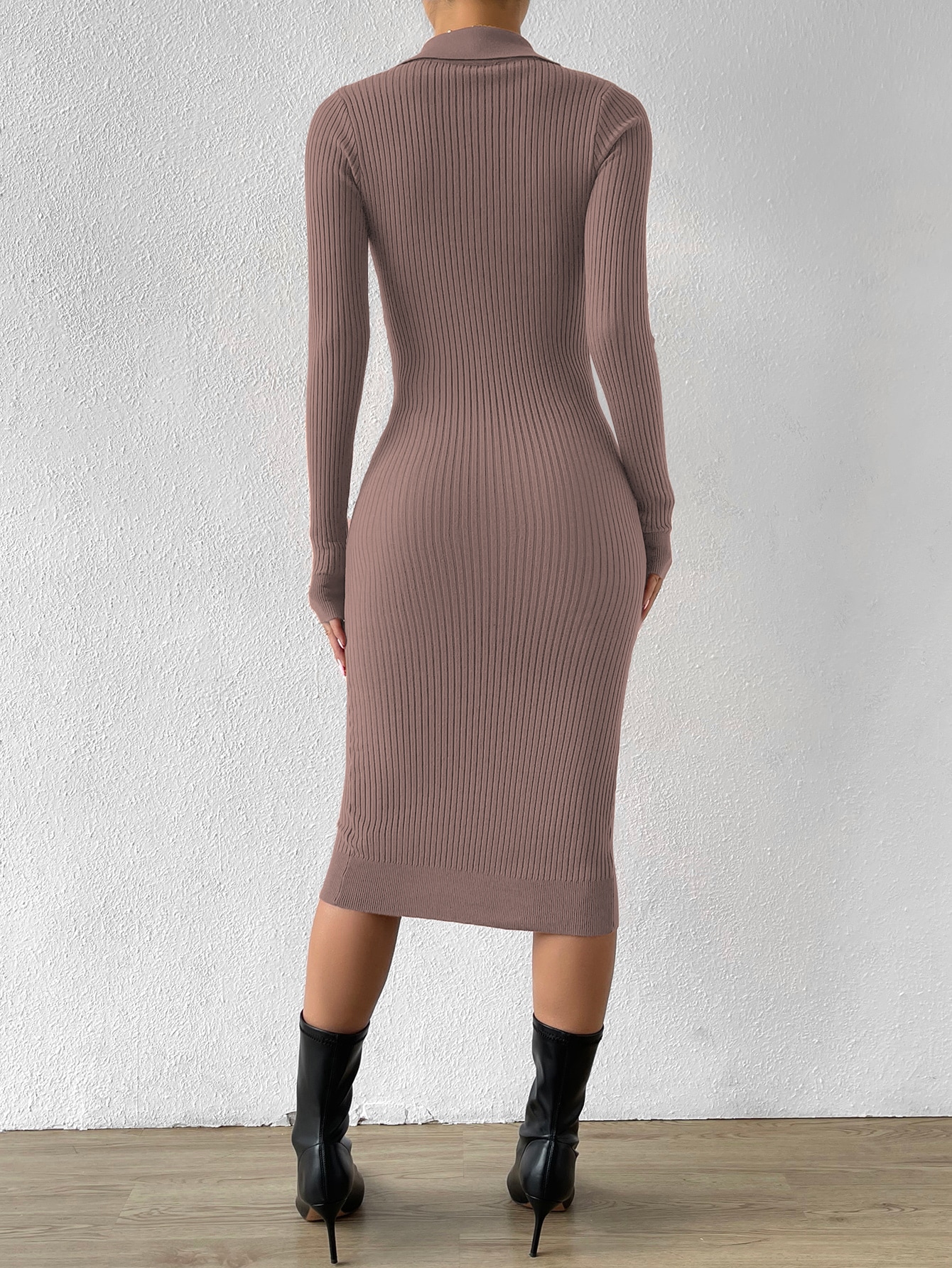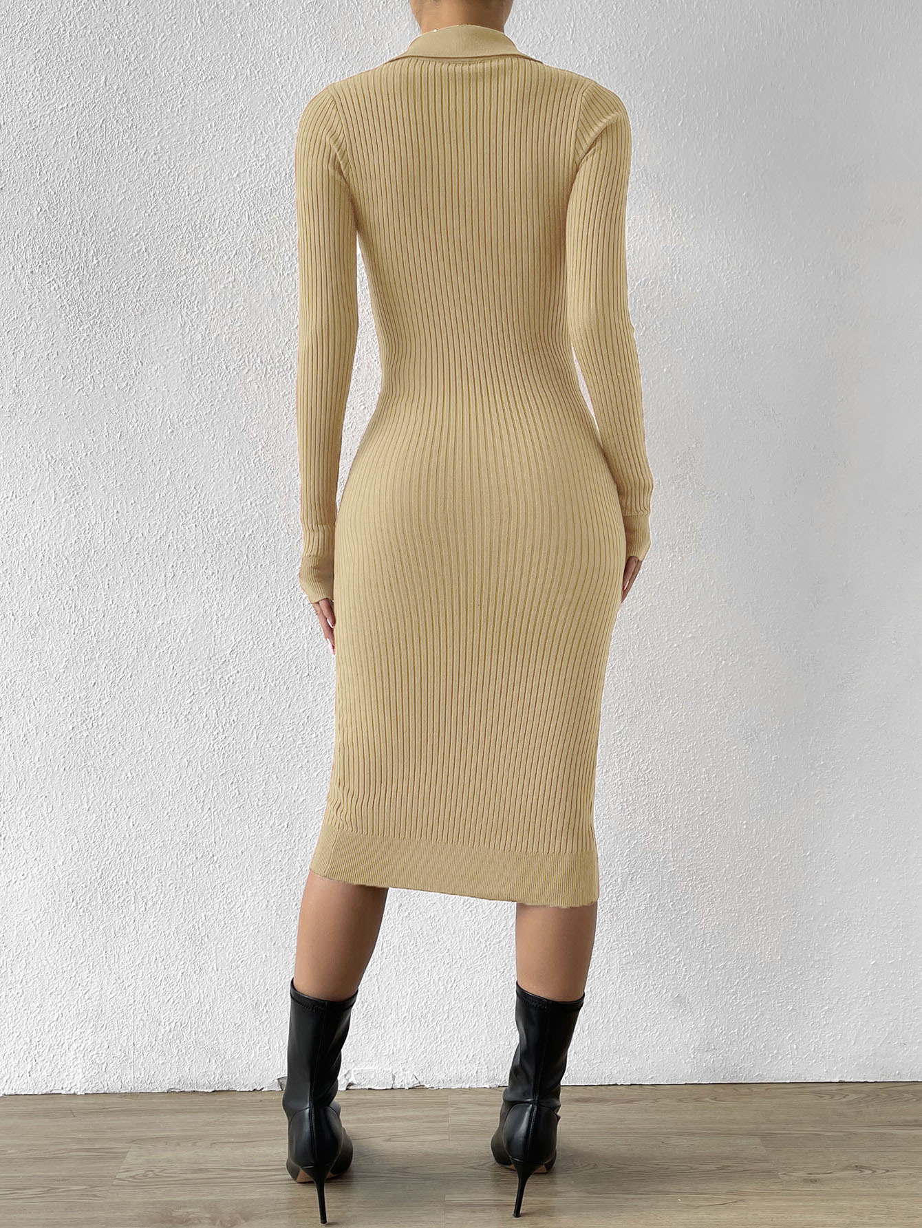 Button Through Ribbed Knit Sweater Dress